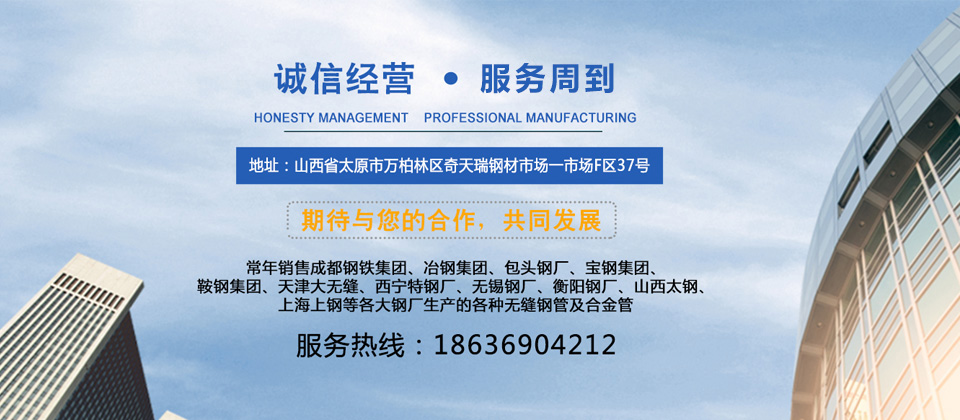 山西衡泰尚盈貿(mào)易有限責任公司是集生產(chǎn)加工經(jīng)營于一體的無縫鋼管、不銹鋼管、合金管、鍋爐管、液壓支柱管、方管、方矩管、不銹鋼板等的大型企業(yè),常年銷售成都鋼鐵集團、冶鋼集團、包頭鋼廠、寶鋼集團、鞍鋼集團、天津大無縫、西寧特鋼廠、無錫鋼廠、衡陽鋼廠、山西太鋼、上海上鋼等各大鋼廠生產(chǎn)的各種無縫鋼管及合金管。